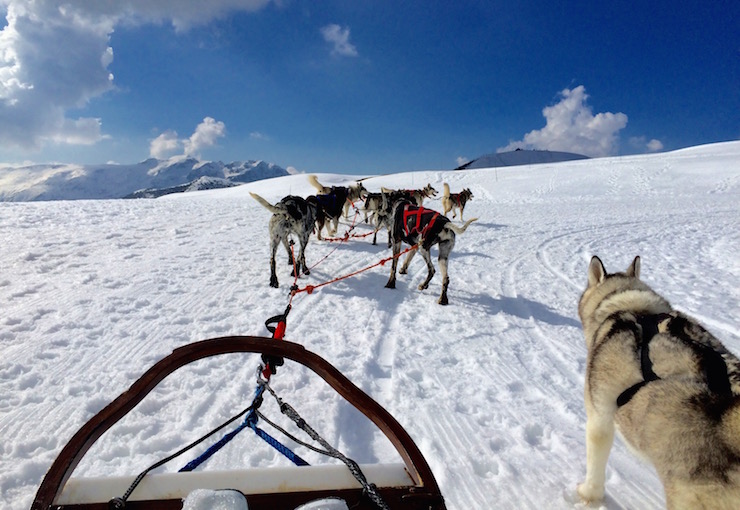 Travel the slopes in the most authentic way, aboard a sleigh that is being transported by a mix of Huskies and other snow dogs.